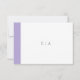 Carte RSVP de mariage moderne avec une bande violette lavande numérique audacieuse le long du côté gauche. Le modèle est composé d'une police serif classique, d'une police serif moderne et d'un script élégant. Le dos a une bande le long du côté gauche avec votre monogramme. Ce design simple et minimaliste est parfait pour un mariage traditionnel et formel.
