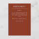 Complétez votre gamme de papeterie mariage avec cette carte de boîtier de réponse RSVP orientée typographie conçue pour coordonner avec notre gamme de papeterie mariage "Elegant Modern Simple Elements". ● ✦ Entièrement personnalisable et facile à personnaliser. Disponible dans une palette de couleurs soigneusement entretenues, cette carte peut être adaptée à votre thème mariage ou à votre style personnel. Nous sommes là pour vous aider à adapter la conception à vos détails mariages spécifiques - texte, alignement, couleur personnalisée, etc. - et vous aider à créer une suite de papeterie mariage cohésive qui vous est propre.