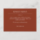 Complétez votre gamme de papeterie mariage avec cette carte de boîtier de réponse RSVP orientée typographie conçue pour coordonner avec notre gamme de papeterie mariage "Elegant Modern Simple Elements". ● ✦ Entièrement personnalisable et facile à personnaliser. Disponible dans une palette de couleurs soigneusement entretenues, cette carte peut être adaptée à votre thème mariage ou à votre style personnel. Nous sommes là pour vous aider à adapter la conception à vos détails mariages spécifiques - texte, alignement, couleur personnalisée, etc. - et vous aider à créer une suite de papeterie mariage cohésive qui vous est propre.