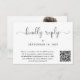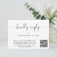 Elégante carte RSVP mariage qui présente "réponse gentille" dans un script de calligraphie chic. Entrez l'adresse de votre site Web mariage pour créer un code QR que vos invités peuvent analyser en ligne vers RSVP. Au verso, vous trouverez votre photo superposée avec vos prénoms et la date du mariage unis par coeur.