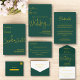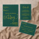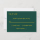 Cette élégante carte RSVP verte et or est parfaite pour un mariage moderne. le design simple présente une élégante calligraphie dorée sur un arrière - plan vert.