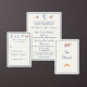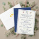 Design front features an elegant heading in a lovely navy-blue color displayed against a white background. The images of the Sacred and Immaculate Hearts of Jesus and Mary are pictured at right. Your text is featured in the traditional format for a Catholic response card. Entire design is framed with an elegant matching border.