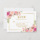 Aquarelle moderne élégante Floral rose Blush Gold Wedding Carte RSVP - Gold Frame avec roses roses et verdure
