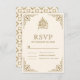Elégante carte RSVP avec une élégante bordure dorée et "Bismillah" en calligraphie arabe sur un arrière - plan crème. Retournez la carte pour révéler un motif or et crème au dos de la carte.