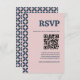 RSVP en style avec notre carte de Mariage rétro géométrique Mid Century Blush Navy. Sur le devant de la carte, vous pouvez ajouter votre propre image de code QR ou en générer une à l'aide des outils de personnalisation de Zazzle ou supprimer et remplacer le texte. Ajoutez vos propres détails en cliquant sur l'option "personnaliser". Une élégance intemporelle et une touche moderne. Découvrez toute la collection pour un thème mariage cohésif qui rayonne de sophistication.