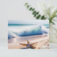 Belle carte de réponse de mariage pour votre mariage en bord de plage, tropical, île, décontracté. Jolie photo d'une plage avec des vagues turquoise roulantes, des dollars de sable et des étoiles de mer. Personnalisez avec votre texte. Créez le faire-part de mariage selon vos spécifications. L'image a été créée avec l'IA. #contenusgénérés
