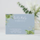 Une élégante carte RSVP bleu poussiéreuse à eucalyptus avec vos détails dans la typographie chic. Conçu par Thisisnotme©