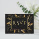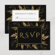 Cartons Réponse Feuillage doré | Élégant Mariage noir or