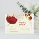 Fleurs romantiques rouges et blanches avec carte de réponse mariage botanique feuille d'or. Les détails de la parties scintillant sont simulés.