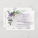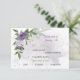 Magnifique carte rsvp botanique personnalisable avec choix de repas belle teintes violettes et fleurs blanches avec feuilles verts