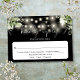 Cette élégante carte RSVP de mariage noir et blanc, avec de jolies lampes à cordes et de la verdure fleurie, peut être personnalisée avec vos informations dans la typographie chic. Conçu par Thisisnotme©