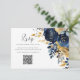 Cartons Réponse Floral Navy Blue Gold QR Code Mariage