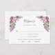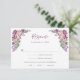 Elégante carte RSVP Florale Violet. Élégant script de calligraphie et d'exquises aquarelles peintes à la main dans la lavande douce, rose vif, bordeaux et violet vif, ornées de fleurs sauvages délicats, de roses et d'une végétation élégante. Parfait pour le printemps, l'été et le mariage de automne, chaque article de cette collection murmure l'amour, l'enchantement et le romantisme intemporel qui vous préparent le décor de votre célébration inoubliable. Laissez la beauté de la nature et le charme de l'élégance vintage orner votre journée spéciale avec notre collection captivante.