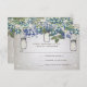 Mariage RSVP Rustic Luxe Enchanted Forest Mason Jar Bleu Argent Vert élégant Argent Lumières Arrière - plan Mariage RSVP réponse cartes. Royal Blue to Navy Floral Fairy Tale Tree with Mason Jars Hanging from the Kale Green Whimsical tree with Stars and Garland, fireflies, plumes bleues, et tous les éblouissements que vous obtenez de la guirlande pétillante drapant en haut de ces cartes d'insertion RSVP mariage unique. Parfait pour la forêt enchantée, le conte de fées ou le thème Mariage de la grange de luxe rustique.