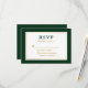 Carte RSVP de mariage vert et blanc de la forêt minimaliste moderne. Cadre Or.
