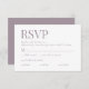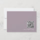 Elégante carte RSVP de mariage lilas avec un code QR scannable pour le site et 3 choix de repas modifiables. L'exemple inclut des menus de viande, de poisson et de végétalien, mais peut être modifié en n'importe quel autre texte. Personnalisez-le avec votre propre texte.