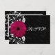 Jolie et élégante collection assortie avec un fond noir et des volutes subtiles, et un motif tourbillonnant blanc vif au premier plan avec une gerbera, une marguerite et une fleur de fuchsia magenta rose vif. Parfaitement élégant pour un mariage d'hiver, un mariage d'été ou pour n'importe quelle saison.
