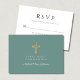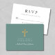 Green Religious Cross Boy First Communion RSVP Card.