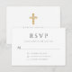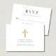 Green Script Religious Cross Boy First Communion RSVP Card.