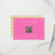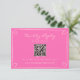 A simple and elegant calligraphy colorful retro wedding rsvp card. As you see it has a vintage modern hot pink background with cream hand written script inside a hand drawn frame. And customizable QR code for your invites to RSVP online. And pink and orange hand painted pinstripes on the back. You can edit it by clicking on the personalize button.