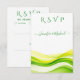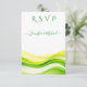 This RSVP card features a bright citrus green palette with layered lime, chartreuse, apple and yellow tones, adding a playful, modern touch to your wedding details. Elegant script typography combined with clean, contemporary text ensures your guests’ responses are both stylish and easy to read, while the vivid colors reflect a celebration full of warmth and personality.