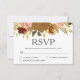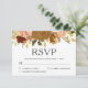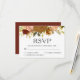 Une belle carte d'enceinte RSVP de mariage rustique avec une bordure fleurie luxuriante de roses d'aquarelle dans les tons d'automne de paprika, orange, bordeaux, brun, or, rose, pêche, rouille, ivoire et crème. Customisez le texte avec votre date de réponse préférée et acceptez/refusez le libellé. Le revers est une teinte bordeaux assortie. Idéal pour un mariage d'automne ou d'hiver. Consultez notre collection de mariages floraux rustiques du Jardin d'automne pour coordonner les conceptions.