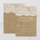 Cette collection de mariages rustiques est un design étonnant avec un joli arrière - plan rustique à effet kraft avec une décoration romantique vintage en dentelle blanche. Ces cartes RSVP peuvent être personnalisées pour votre occasion spéciale et feraient les cartes d'insertion parfaites pour un mariage, douche nuptiale, fête de fiançailles, fête d'anniversaire et bien plus encore. Les éléments mariages correspondants se trouvent dans la collection.