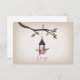 Un mariage de plein air r.s.v.p. avec l'illustration d'une lanterne remplie d'un arrangement de fleurs roses accroché à une branche d'arbre avec des feuilles verts.