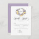 Cette élégante carte de mariage branchée RSVP présente une crête monogramme avec lavande et couronne de citron. Il est personnalisé en typographie élégante et comprend des options de repas. L'arrière de la carte est une teinte solide de lavande.