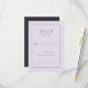 This elegant wedding RSVP card features a minimalist and sophisticated design, perfect for couples who appreciate modern simplicity. The dark background contrasts beautifully with the clean white typography, creating an understated yet refined look. With its simple lines and graceful script accents, this card exudes a sense of timeless elegance and formality, making it ideal for a chic and stylish celebration. It offers customizable text areas to personalize your message while maintaining its sleek aesthetic, ensuring that every detail reflects your special day's sophistication.