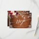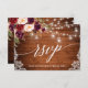 Bois rustique, écriture calligraphique moderne, carte de réponse en dentelle florale aquarelle en Bourgogne Marsala avec des roses bourgeoises et roses. Lumières de jarres enfilées.