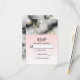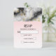 Une carte RSVP de mariage avec un motif marbré élégant et moderne. Marbre blanc, noir et gris fumé avec de minces rubans de tourbillons en faux or dans tout le motif. Un dégradé rose clair arrière - plan sous la motif en marbre.