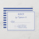 Carte de mariage à thème nautique RSVP, avec devant ayant un aspect de papier aquarelle blanc, avec un cadre bleu mince. Le dos est fait dans un motif horizontal rayé bleu et blanc. Personnalisez tout le texte pour votre journée spéciale. Des produits correspondants sont disponibles.