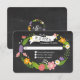 Une suite de faire-part de mariage boho avec une couronne de fleurs blanches composée d'une flore boisée colorée. L'arrière - plan du tableau de bord donne à ce design une ambiance décontractée qui est parfaite pour les mariages extérieurs.