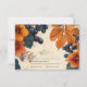 Célébrez votre amour avec cet élégant design d'inspiration automnale avec des fleurs d'orange brûlée, du feuillage marine et des bleuets aquarelles. Un mélange parfait de charme saisonnier et de sophistication audacieuse, idéal pour les mariages d'automne avec une esthétique humoristique et romantique. Entièrement modifiable pour convenir à votre journée spéciale.