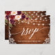 Carte de Réponse en Lace avec Fleurs de Bourgogne et Roses Roses, Écriture Moderne Calligraphiée, Floral de Marsala de Bourgogne Aquarelle pour Mariage. Lumières Suspendues Éclairantes.