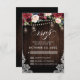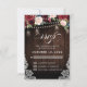 Faire-part de mariage bohème champêtre en bois rustique avec des graphiques de fleurs peintes à la main en aquarelle / roses dans des tons riches de bourgogne, rouge marsala, bleu marine et rose blush / pêche et une police de lettrage à la main charmante avec des guirlandes lumineuses, jarre de maçon et fond en bois de dentelle. N'hésitez pas à me contacter pour toute aide de personnalisation ou si vous avez besoin d'un autre produit avec ce design.