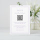 Carte RSVP de mariage violet/lavande de style classique avec un design simple et minimal avec un code QR en option et des détails entourés d'une double bordure (si vous préférez, vous pouvez supprimer le code QR dans l'outil d'édition de conception). Les fontes alternent entre un script élégant, une fonte serif traditionnelle et minimaliste sans serif. Cette carte de réponse est idéale pour un mariage officiel.