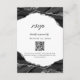 Ajoutez votre touche spéciale à cette élégante carte RSVP aux tons classiques d'agate noir, blanc et gris avec des veines métalliques argentées. Les modèles sont fournis pour votre date RSVP et le code QR du site Web mariage. N'hésitez pas à me contacter si vous avez besoin d'aide ou d'une commande personnalisée.