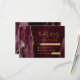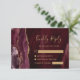 Cette élégante carte d'enceinte RSVP de mariage moderne présente un design d'agate d'aquarelle bordeaux orné d'une parties scintillant en faux or. Le titre "Kindly Reply" apparaît dans le script d'écriture manuscrite, avec le texte personnalisable ci-dessous en police de cuivre couleur or. L'envers est assorti d'un design d'agate bordeaux et or.