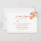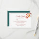 Élégante et saisonnière, cette carte RSVP mariage de automne turquoise et orange présente un feuillage d'automne aquarelle et une disposition simple et classique pour la collecte des réponses des invités. Avec l'espace pour les préférences de repas et un retour par date, il est parfait pour coordonner avec votre suite mariage sur le thème de l'automne. Entièrement personnalisable pour correspondre aux détails de votre événement et à votre style personnel.