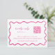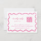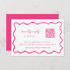 Cadre de ligne ondulée dessinée à la main, carte rsvp de mariage de code QR. Cerise Typographie rose avec accents d'illustration dessinés à la main et support solide rose.