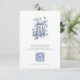 Toile Bleue Rustique De Jouy QR Code Mariage RSVP. Un design floral bleu toile de jouy est au-dessus du texte et votre code QR à l'avant et plus grand à l'arrière.