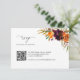 Carte RSVP de mariage fleurie boho rustique avec un bouquet floral aquarelle peint avec des tons chauds et terreux d'orange brûlée, de terre cuite et de bordeaux profond avec un peu de verdure. Ci-dessous, votre code QR et les instructions. Cette élégante carte RSVP aux riches tons d'automne est idéale pour un mariage de automne.