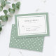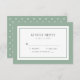 Cette carte de mariage classique moderne RSVP comporte une couleur modifiable; pour changer la couleur de la bordure et de l'arrière - plan arrière de la couleur verte sauge à la couleur de votre choix, cliquez sur le bouton personnaliser et changez simplement la couleur de l'arrière - plan avant et arrière. Personnalisez-le en remplaçant le texte de l'espace réservé. Pour plus d'options comme changer la police, sa taille et l'espacement entre les lettres cliquez sur le bouton "Personnaliser". *Veuillez noter que le filigrane Zazzle qui apparaît dans l'aperçu du zoom n'apparaîtra PAS sur le produit imprimé final. © Bois de rose et agrumes