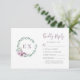 Cette carte de mariage RSVP présente les initiales monographiques de la mariée et du marié en violet encadrées par une couronne de feuilles verts et de fleurs violettes sur le côté gauche. Customisez le texte de droite, avec place pour une option RSVP en ligne avec l'URL du site.