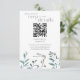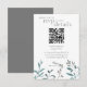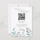 Cette simple carte moderne jardin vert mariage RSVP et détails avec QR Code dispose d'une aquarelle damselfly/dragonfly dans les tons bleu et vert avec ailes irisées. Il repose sur un agencement simple de verdure naturelle de jardin aquarelle dans les tons vert, bleu, gris et marron avec un arrière - plan blanc. Le dos est un gris solide qui correspond au texte. Ajoutez simplement l'URL de votre site Web mariage, afin que vos invités puissent scanner le code QR et répondre facilement et voir tous vos détails mariages.