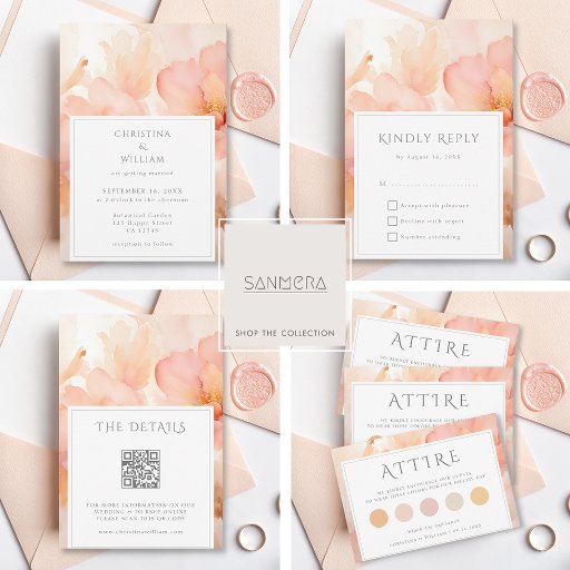 Modern Watercolor Blush Peach Floral WeddingConçu par Linda Lee