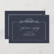 Voici la Marine Blue Floral Border Monogram Wedding RSVP! Cette carte de réponse mariage moderne présente une belle bordure en monogramme d'art floral dessinée à la main, avec calligraphie en écriture manuscrite pour une touche unique et élégante. Parfait pour tous les noces de printemps ou d'été, cette invitation vous impressionnera certainement. Le design épuré et simple conviendra parfaitement aux couples qui recherchent un look chic et élégant. Imprimée sur un stock de carte de haute qualité, cette invitation est sûre de faire une déclaration. Il s'agit d'une nouvelle conception, donc veuillez contacter le concepteur pour les produits correspondants pour compléter la suite, OU pour les variations de couleur de cette conception. Copyright Anastasia Surridge pour Invitations élégants, tous droits réservés.