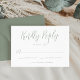 Cartes modernes de mariage RSVP avec un simple script vert sauge. Personnalisez les cartes RSVP minimalistes avec votre date de réponse et acceptez/refusez le libellé. Le dos de la carte est doté d'un arrière - plan vert sage solide.